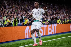 体育资讯3月18日讯 在欧冠1/8决赛次回合的一场比赛中,皇马客场2-1战胜曼城,总比分5-1杀入八强,比赛中皇马边锋维尼修斯打进两球。