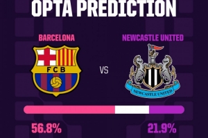 体育资讯3月18日讯 欧冠16强次回合巴萨vs纽卡的比赛将在诺坎普球场进行。知名数据网站Opta列出一系列数据展望这场比赛。