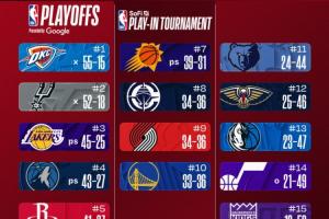 今日的NBA常规赛全部结束,让我们继续一起来关注最新排名: