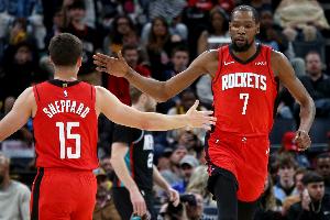 本场比赛,火箭先发:谢泼德、阿门、杜兰特、贾巴里、申京。