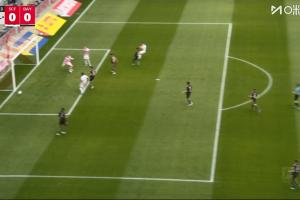弗赖堡球员横传至门前,特雷乌跟进推射,球偏出球门