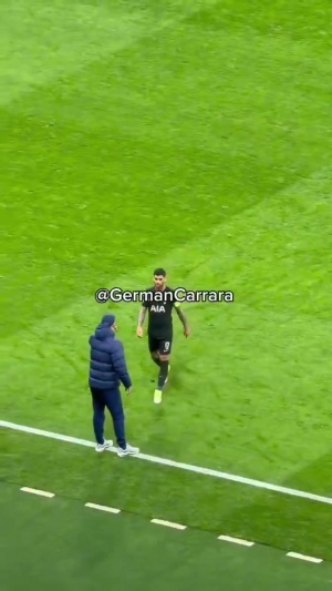 有现场球迷拍下了场上的一幕,在金斯基被换下前,热刺后卫罗梅罗来到场边和主教练图多尔耳语了几句,随后金斯基被替换下场。