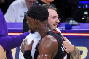 东契奇脸被抓出血痕