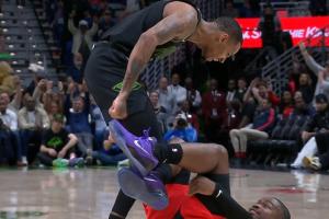 比赛末节,鹈鹕控卫穆雷单挑晃倒谢德后命中杀死比赛的三分球,并居高临下怒喷后者。