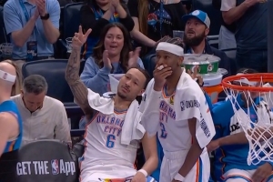 表情包+1!哈滕弧顶挡拆下蛋助麦凯恩命中三分 鸭梨场边捂嘴惊叹